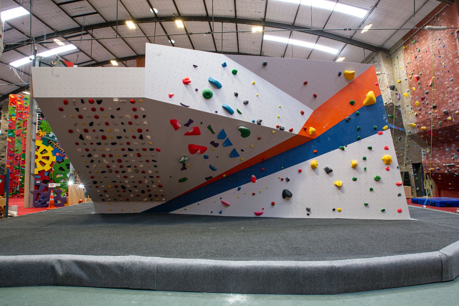 Climb Craft provided a full design, manufacture and install package, which included 250m2 of bouldering wall with a mezzanine area on top, and 180m2 of matting.